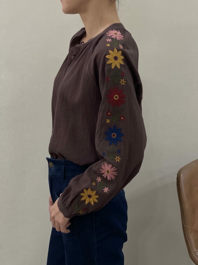 BERRIA/NEW Camisa bordada color marrón Maitane