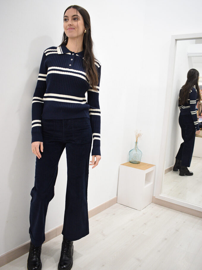 Jersey de punto a rayas azul marino y crudo Fabio