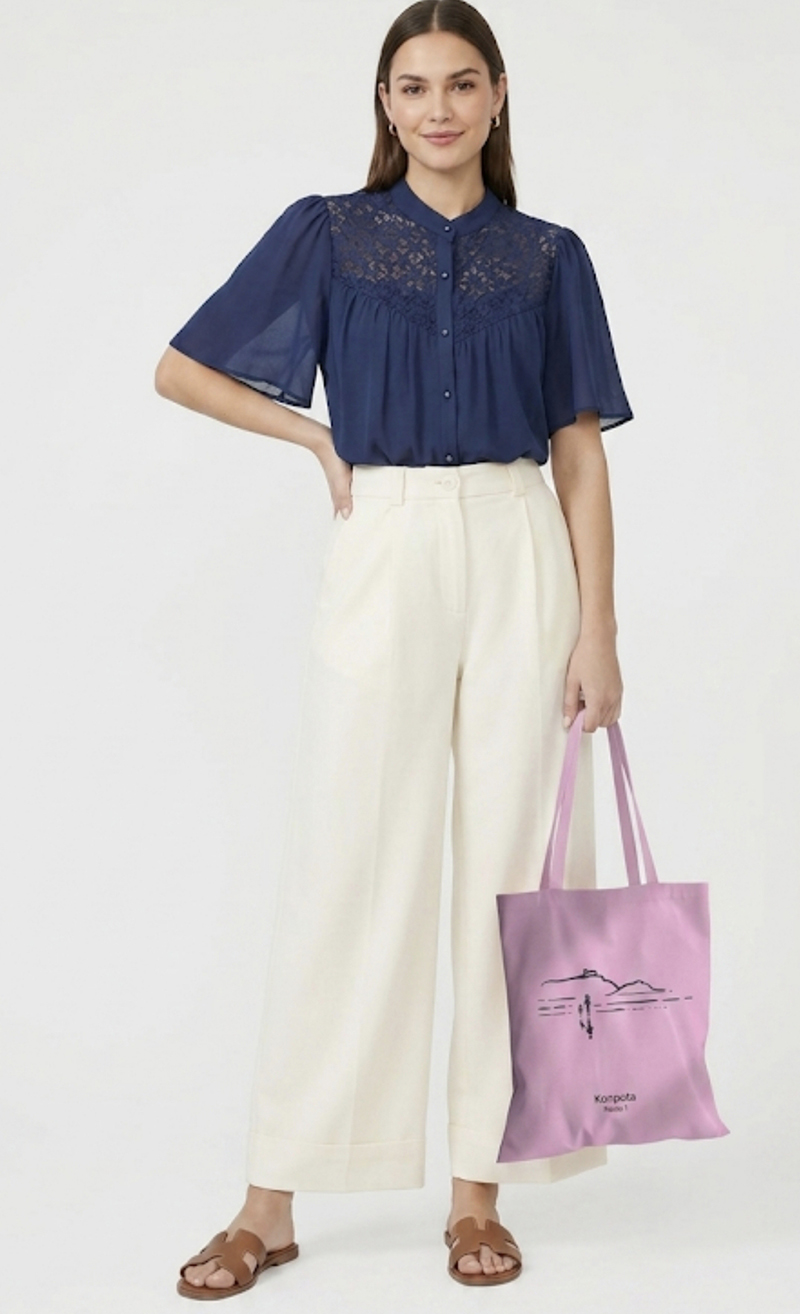 Blusa azul marino Lisa de cuello redondo, botonadura en nacarado del mismo tono hasta abajo, pecho calado en pico con motivos florales y manga corta ancha. Composición: 55% poliester y 45% viscosa.