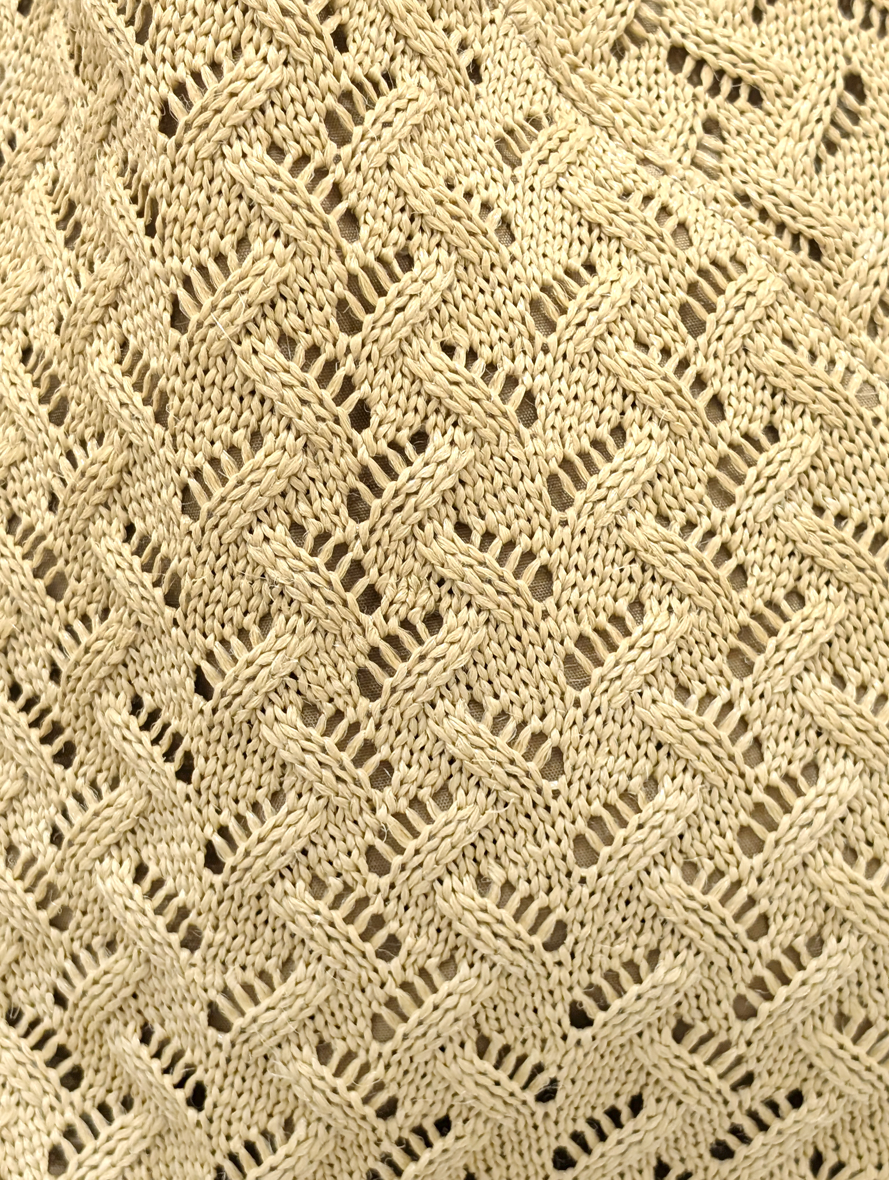 Bolso crema Naoki estilo ganchillo calado con asa de hombro. Tiene en su interior dos bolsillitos y un tercero amplio con cremallera. Pesa muy poco y es muy cómodo y agradable al tacto.