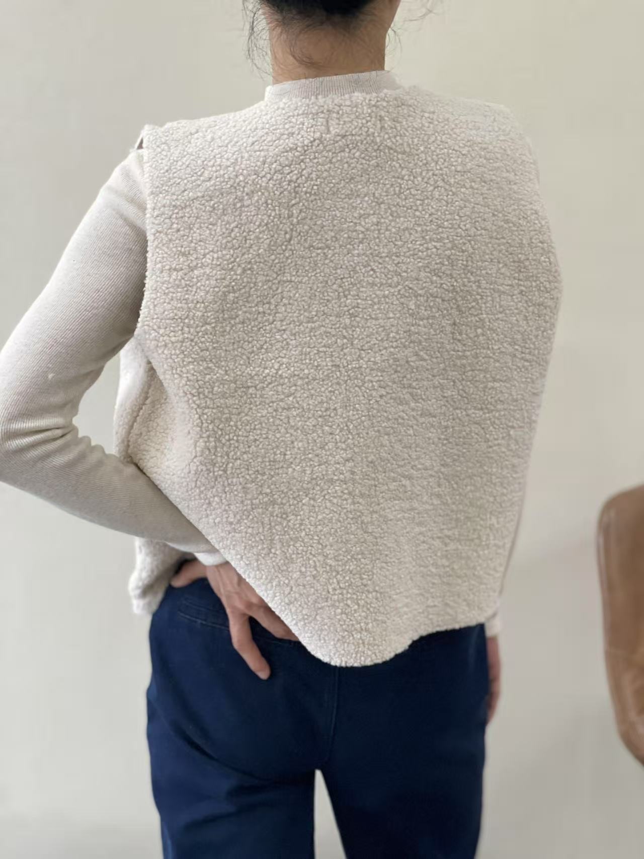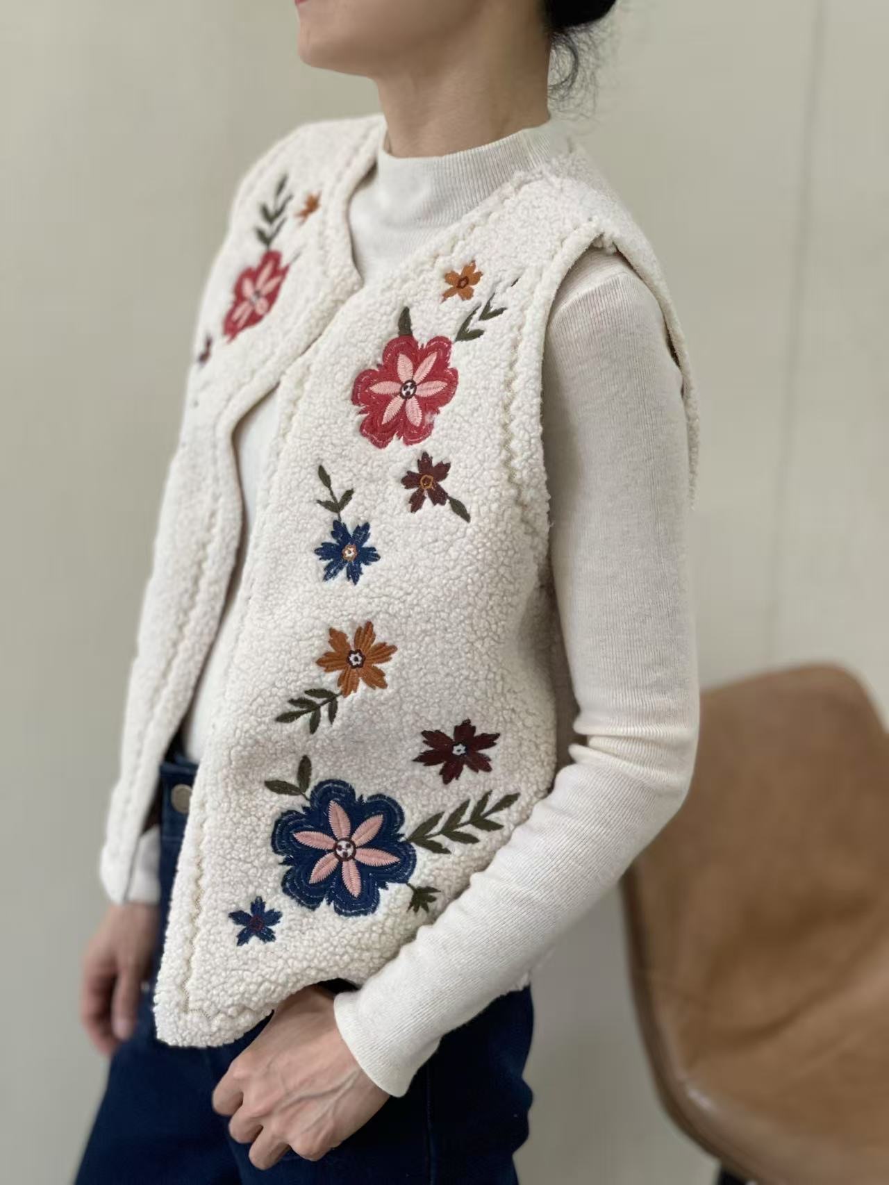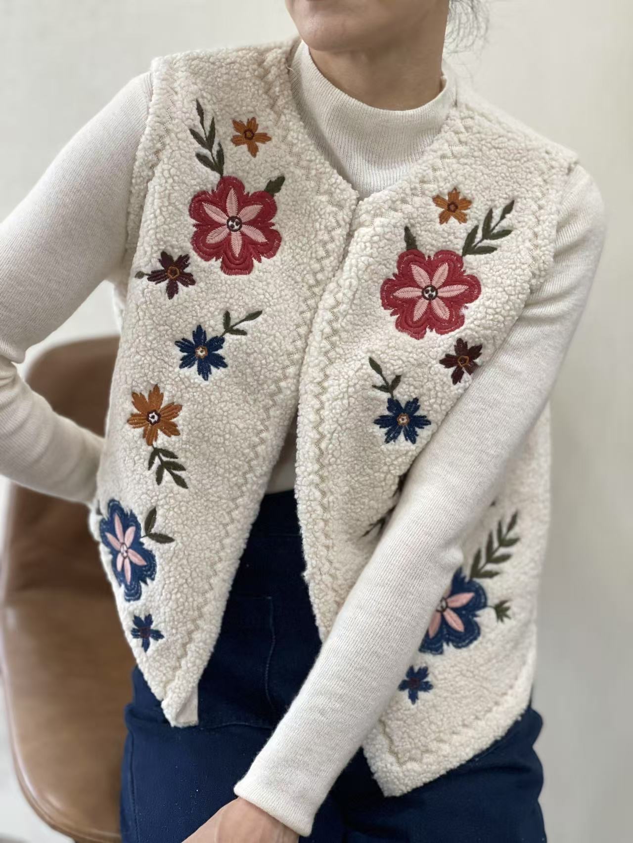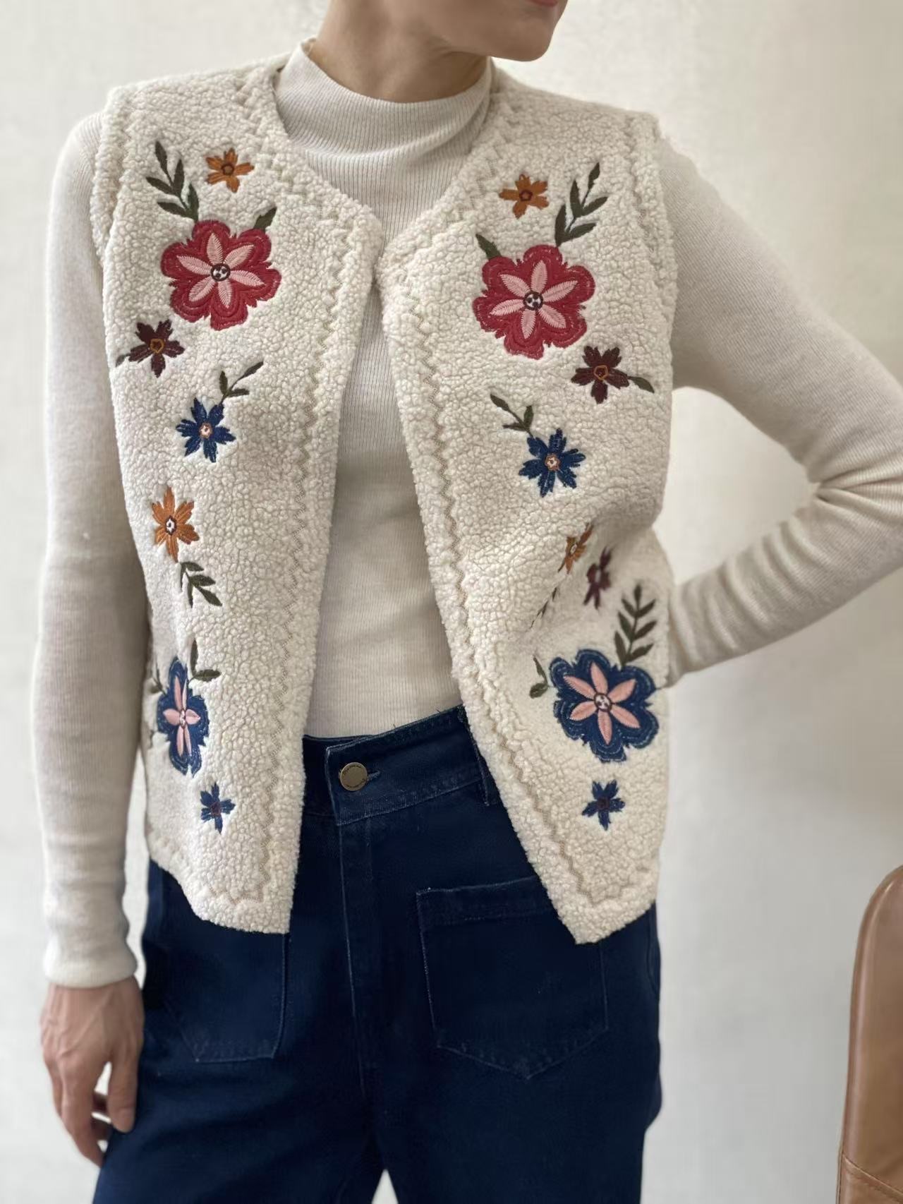 BERRIA/NEW Chaleco de borreguillo crudo con bordado de flores Felipe