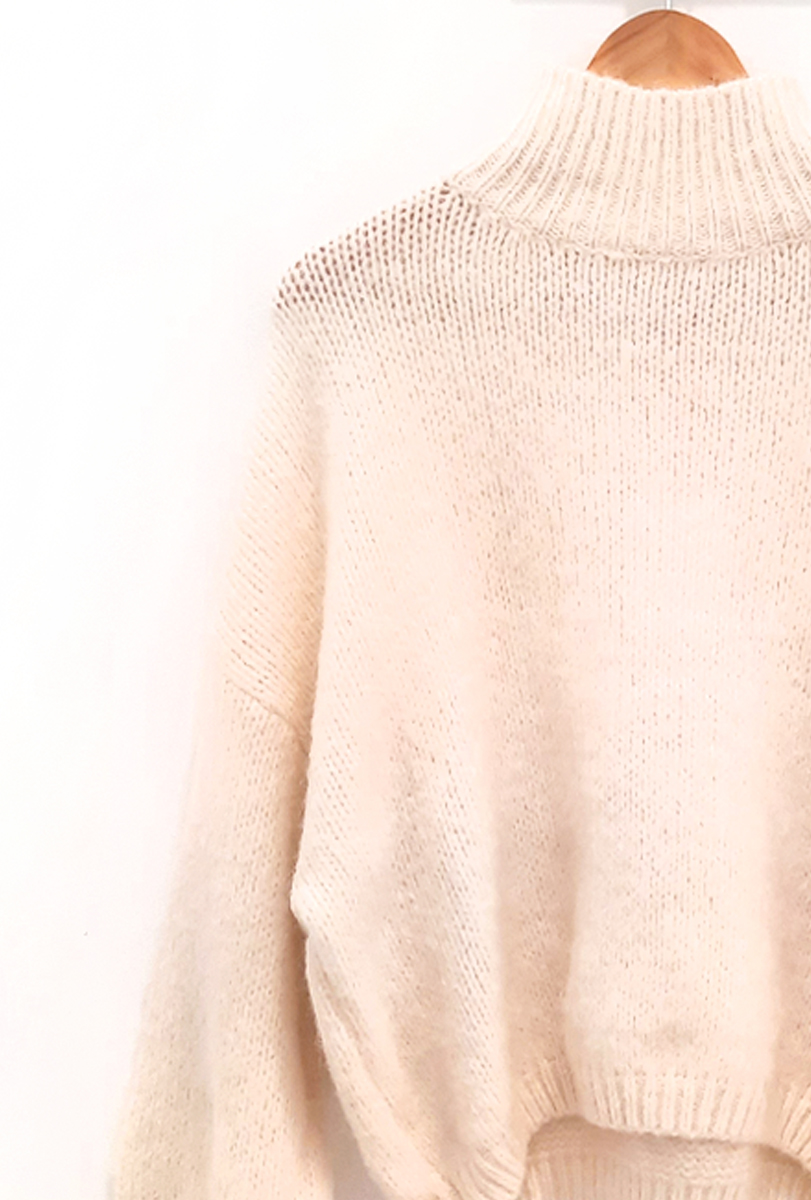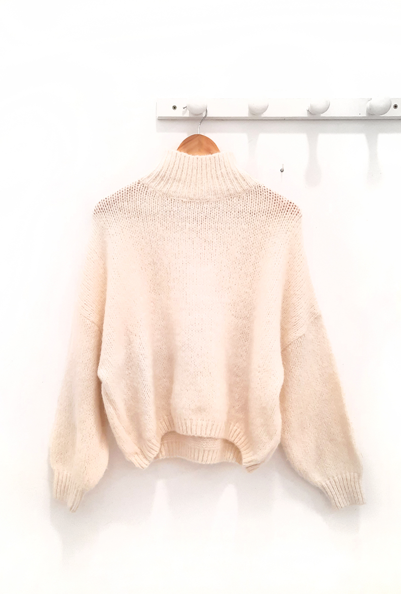 Jersey crudo Dante de punto con cuello redondo alto y parte inferior y puños elásticos.