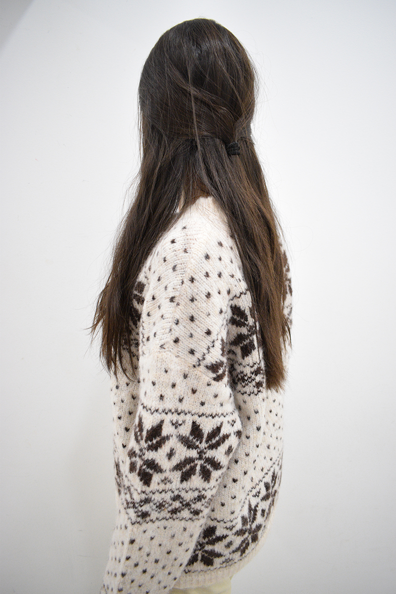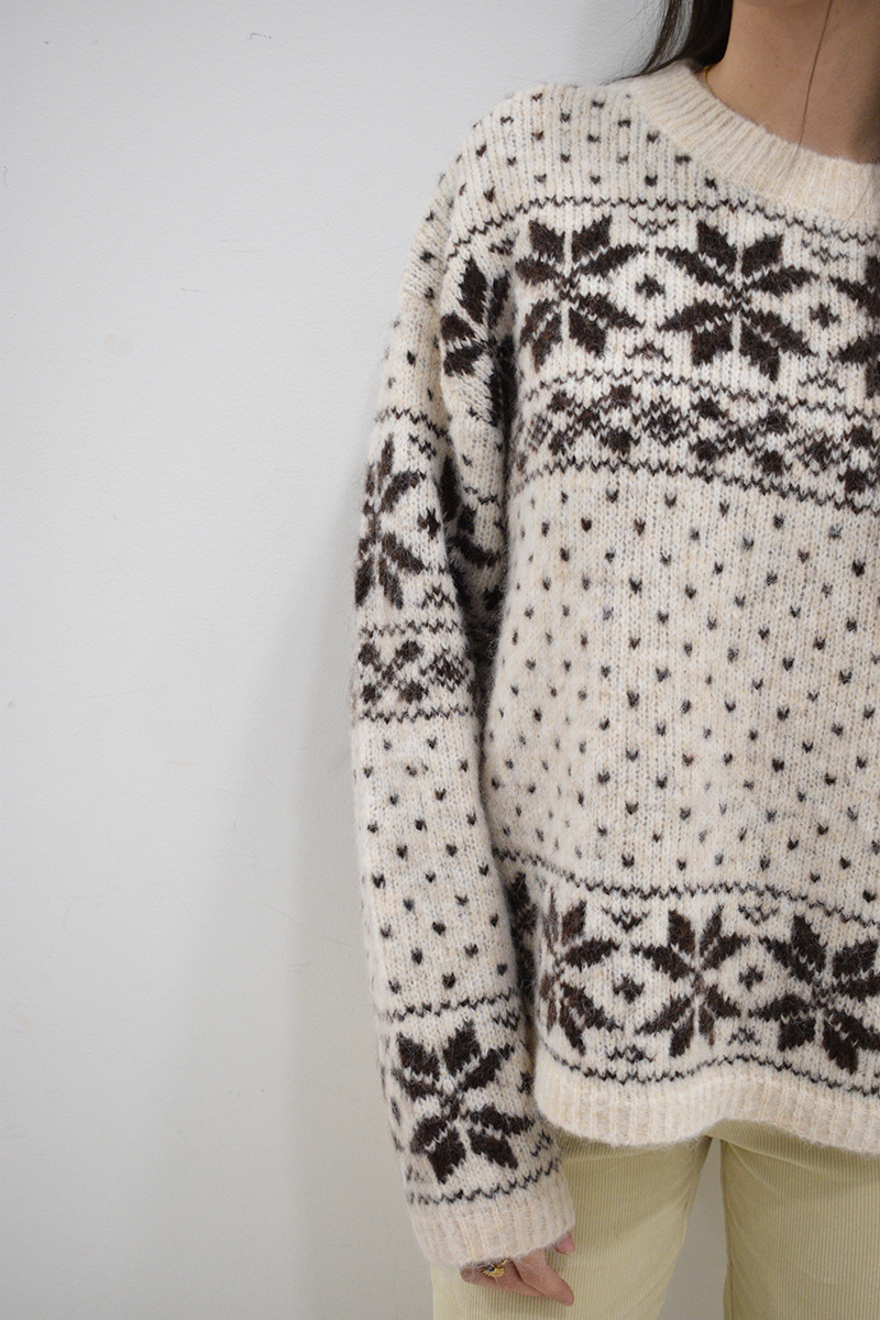Jersey crudo Santa con cuello redondo y estampado navideño de estrellas en color marrón.