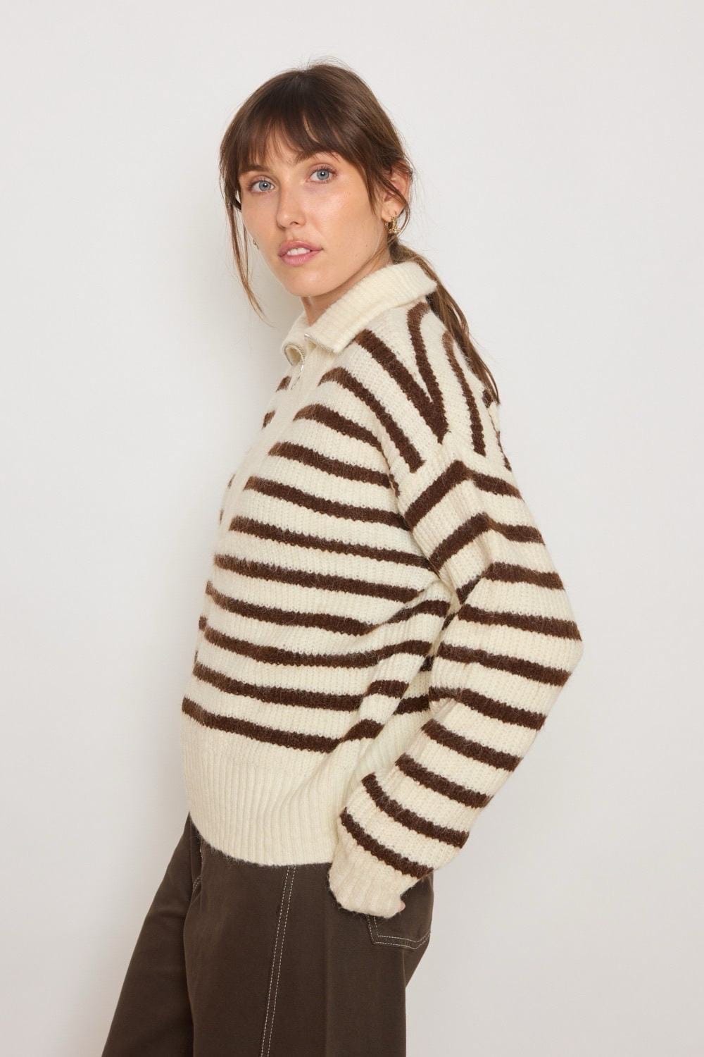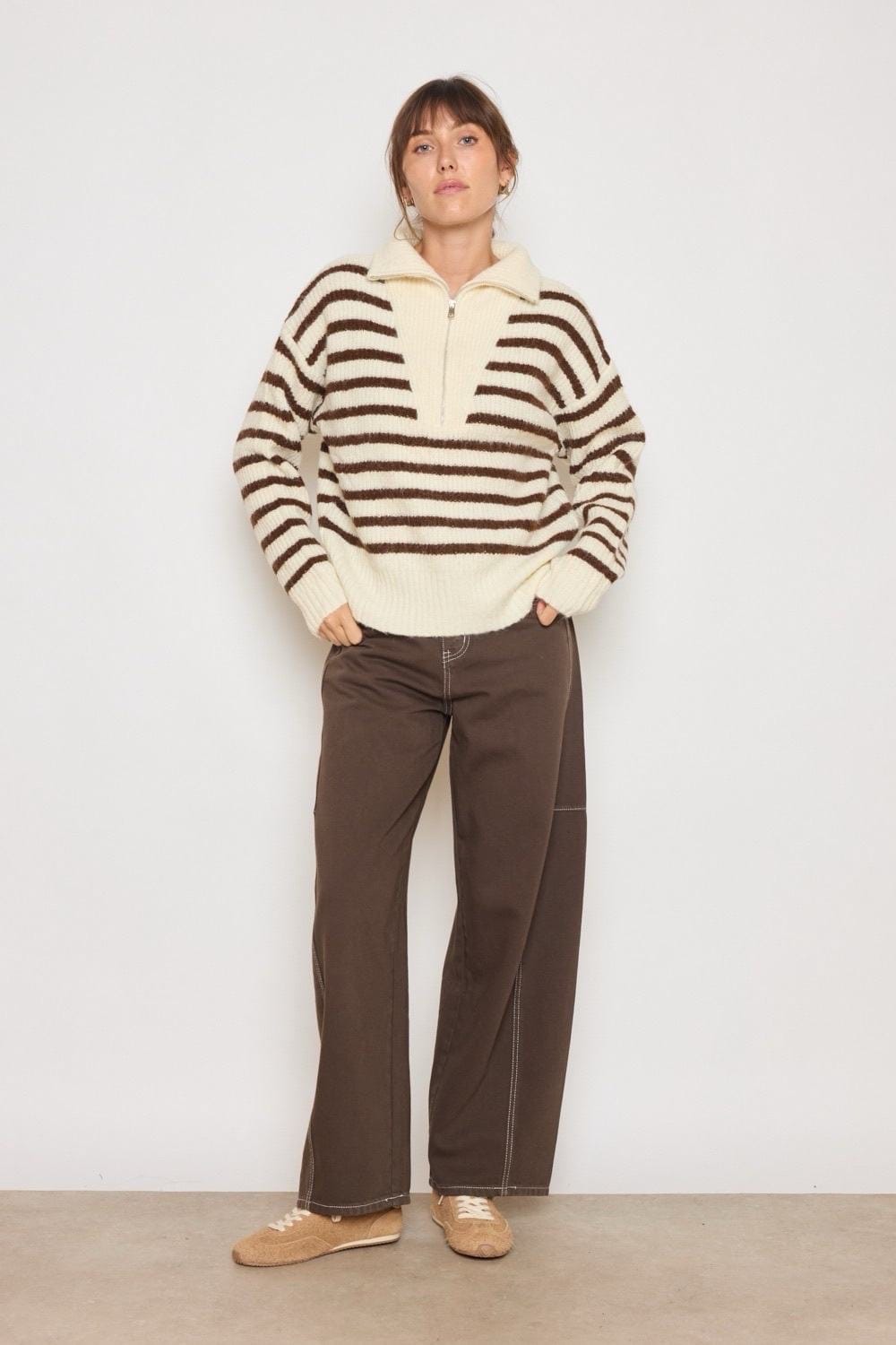 BERRIA/NEW Jersey de punto a rayas crudo y marrón Nemie