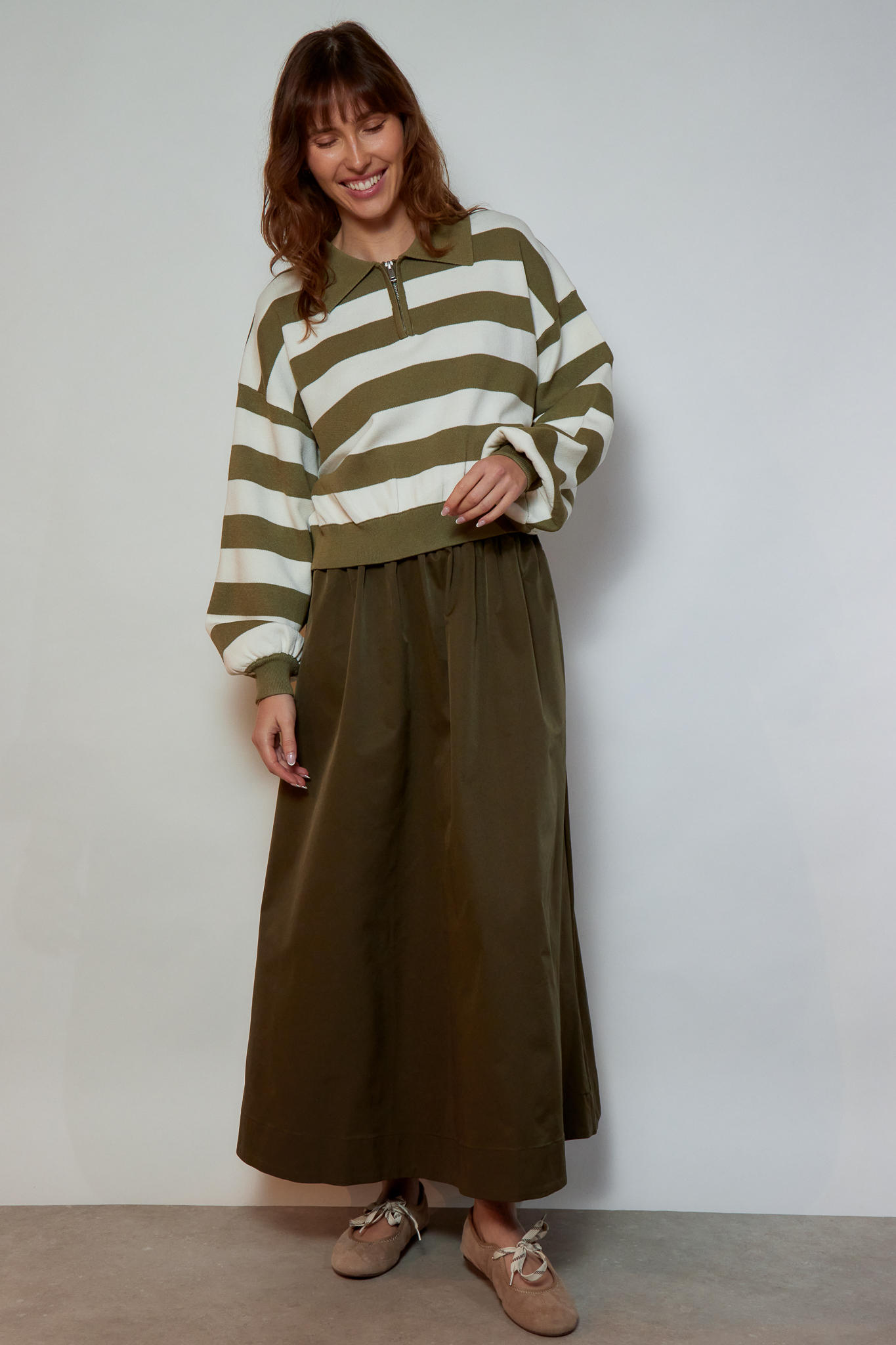 Jersey de rayas verde y beige Nathan de manga larga, cuello con cremallera y solapas y bajo y puños elásticos. Composición: 100% viscosa.