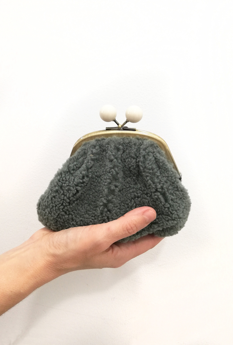 Monedero Vede Dolly de tejido que simula borreguillo. Interior de un único departamento con forro en tono beige.