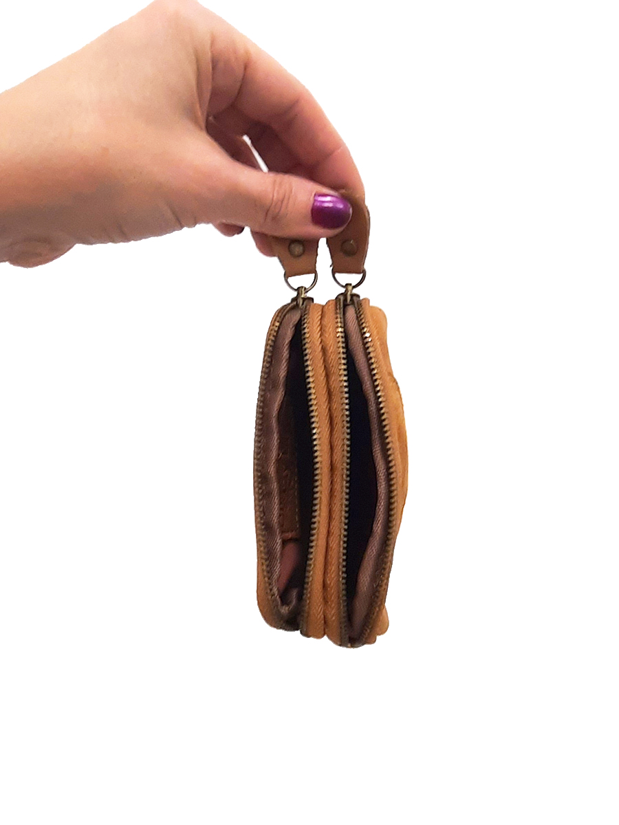 Monedero camel Dos cremalleras