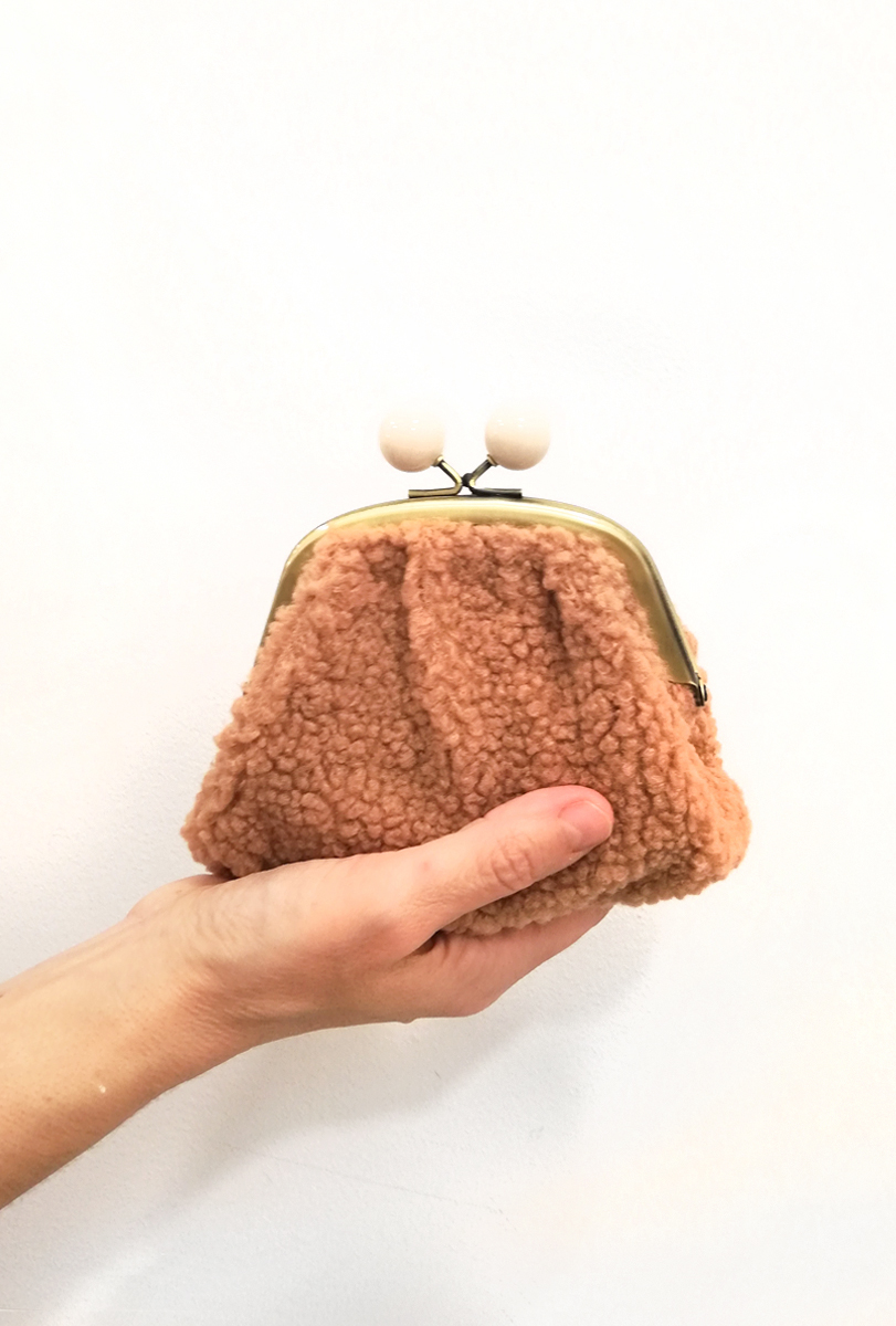 Monedero Marron Dolly de tejido que simula borreguillo. Interior de un único departamento con forro en tono beige.