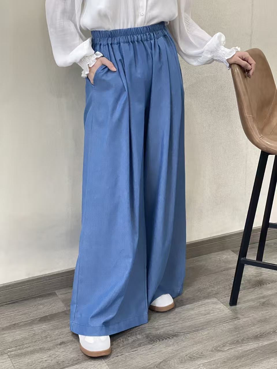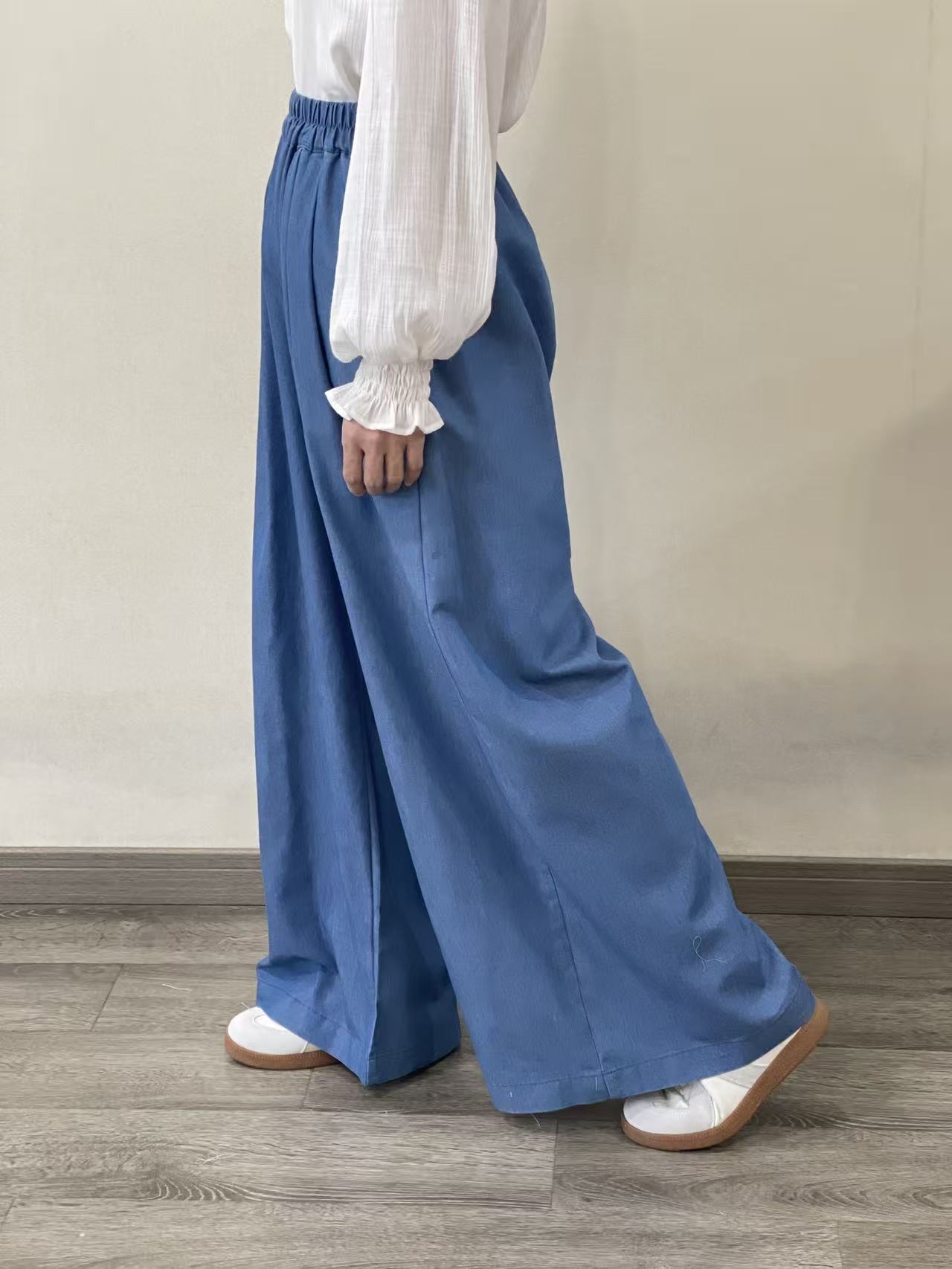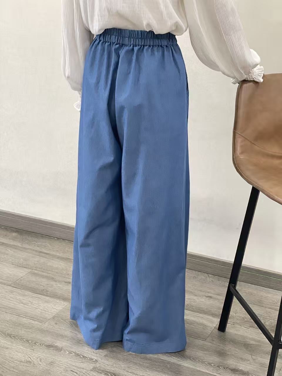 Pantalon de pata ancha Henri tipo denim fino con goma en la cintura, bolsillos laterales y