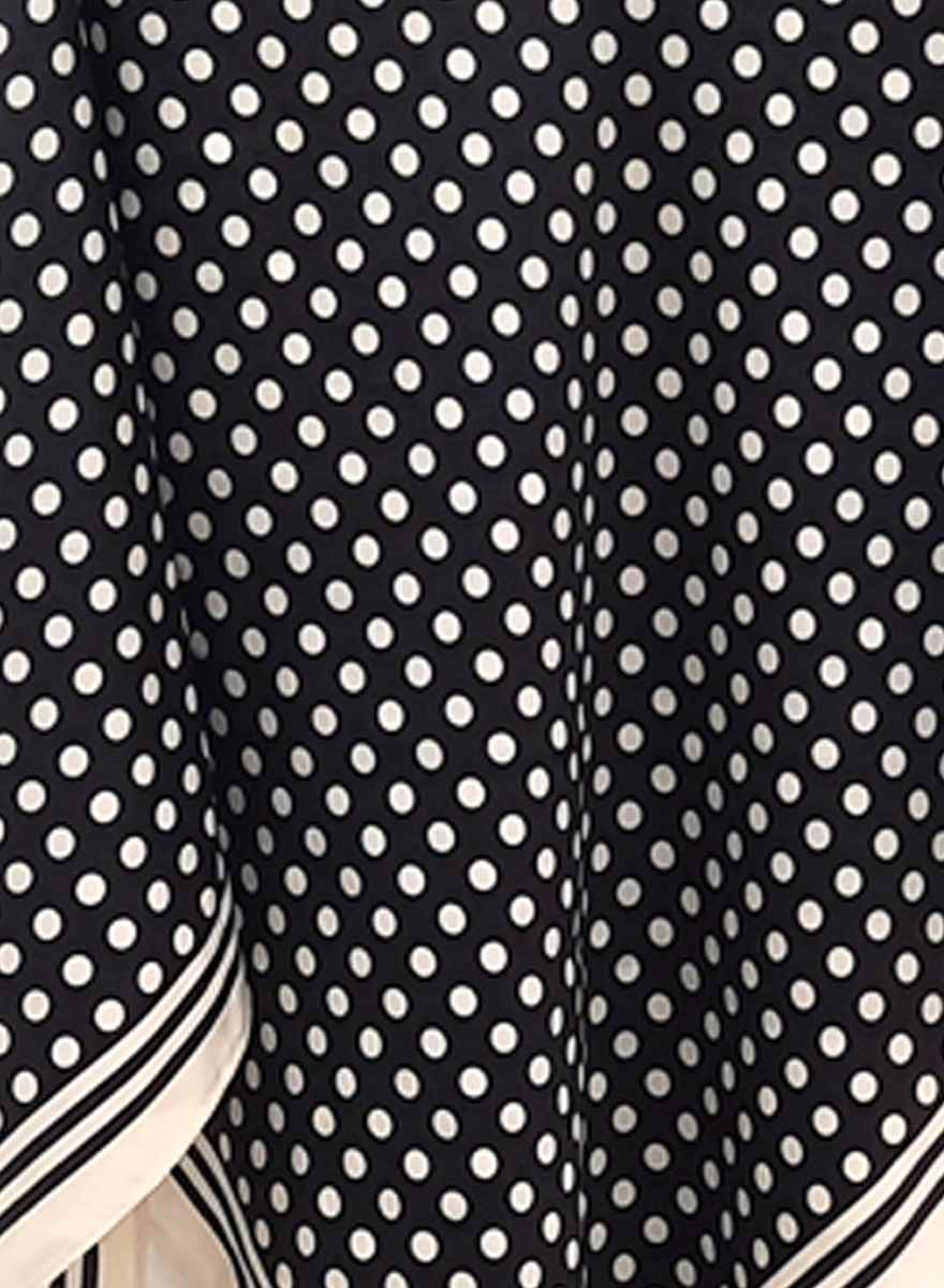 Pañuelo de lunares Mistral en negro con lunares en tono crudo, ribete de líneas y con forma triangular. Composición: 100% poliester.