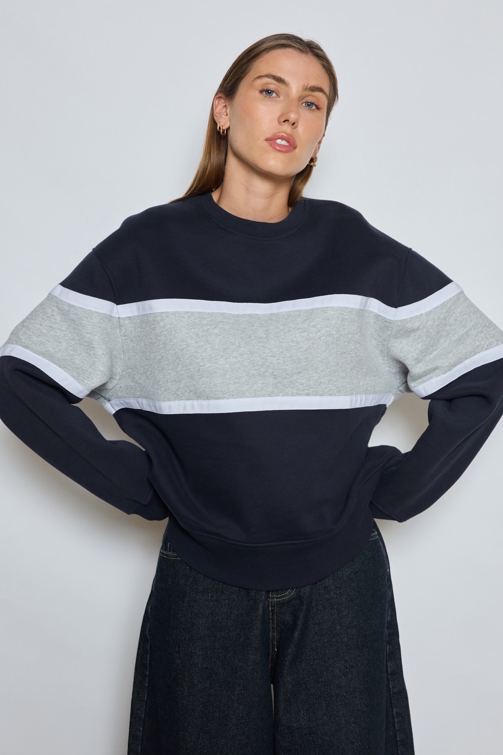 Jersey de punto a rayas azul marino y crudo Fabio