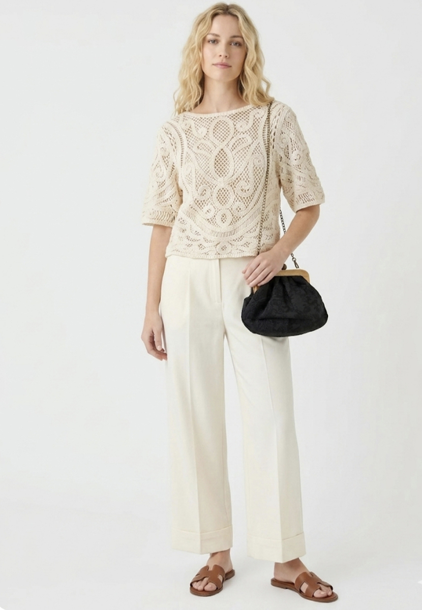 Top beige Charlie calado de manga media con amplio escote redondo y botonera trasera. Composición: 100% algodón.