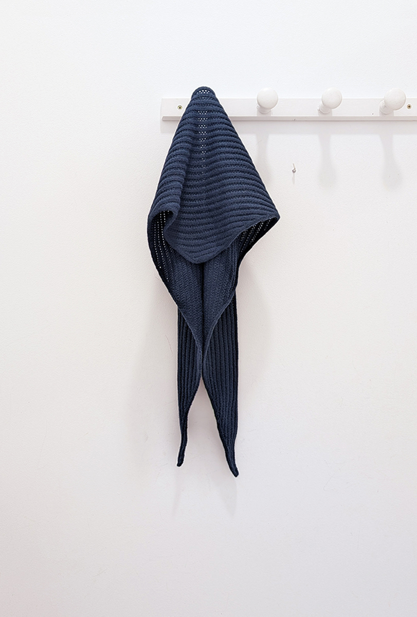 Pañuelo azul marino en forma de triángulo tipo punto.