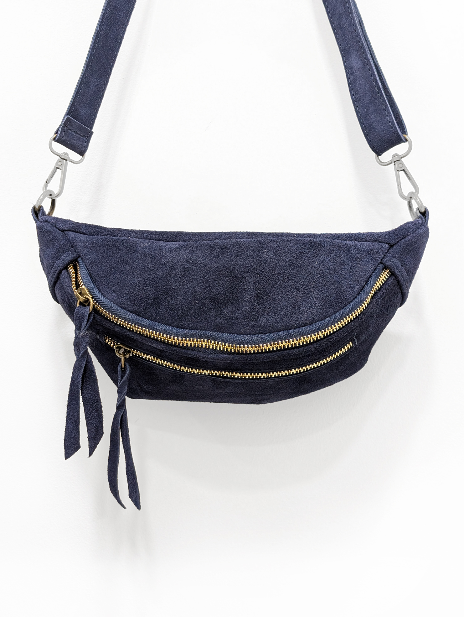 Riñonera color navi Banzai de piel. Bolsillo delantero e interior ambos con cremalleras. Correa ajustable.